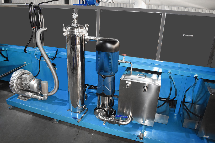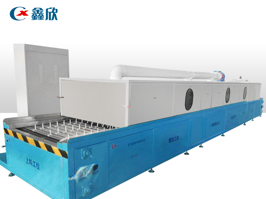 該設(shè)備有上下料網(wǎng)帶、超聲波清洗工位、噴淋漂洗工位、高壓風(fēng)切、熱風(fēng)烘干工位、溫控水加熱系統(tǒng)、風(fēng)機(jī)、溫控空氣加熱系統(tǒng)、移動(dòng)式風(fēng)刀、PLC+觸摸屏控制系統(tǒng)、管路系統(tǒng)及智能電器控制系統(tǒng)等組成。自動(dòng)進(jìn)排液和自動(dòng)加溫系統(tǒng)完全實(shí)現(xiàn)了無(wú)人干預(yù),自動(dòng)運(yùn)行,很大程度上降低了工人的勞動(dòng)強(qiáng)度。先進(jìn)的霧氣處理系統(tǒng)可以將清洗時(shí)產(chǎn)生的霧氣冷凝回流,空氣經(jīng)過(guò)濾和活性炭吸附后排出。