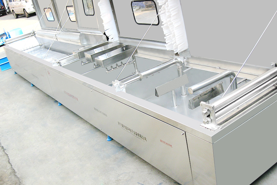 該設(shè)備有上下料網(wǎng)帶、超聲波清洗工位、噴淋漂洗工位、高壓風(fēng)切、熱風(fēng)烘干工位、溫控水加熱系統(tǒng)、風(fēng)機(jī)、溫控空氣加熱系統(tǒng)、移動(dòng)式風(fēng)刀、PLC+觸摸屏控制系統(tǒng)、管路系統(tǒng)及智能電器控制系統(tǒng)等組成。自動(dòng)進(jìn)排液和自動(dòng)加溫系統(tǒng)完全實(shí)現(xiàn)了無(wú)人干預(yù),自動(dòng)運(yùn)行,很大程度上降低了工人的勞動(dòng)強(qiáng)度。先進(jìn)的霧氣處理系統(tǒng)可以將清洗時(shí)產(chǎn)生的霧氣冷凝回流,空氣經(jīng)過(guò)濾和活性炭吸附后排出。