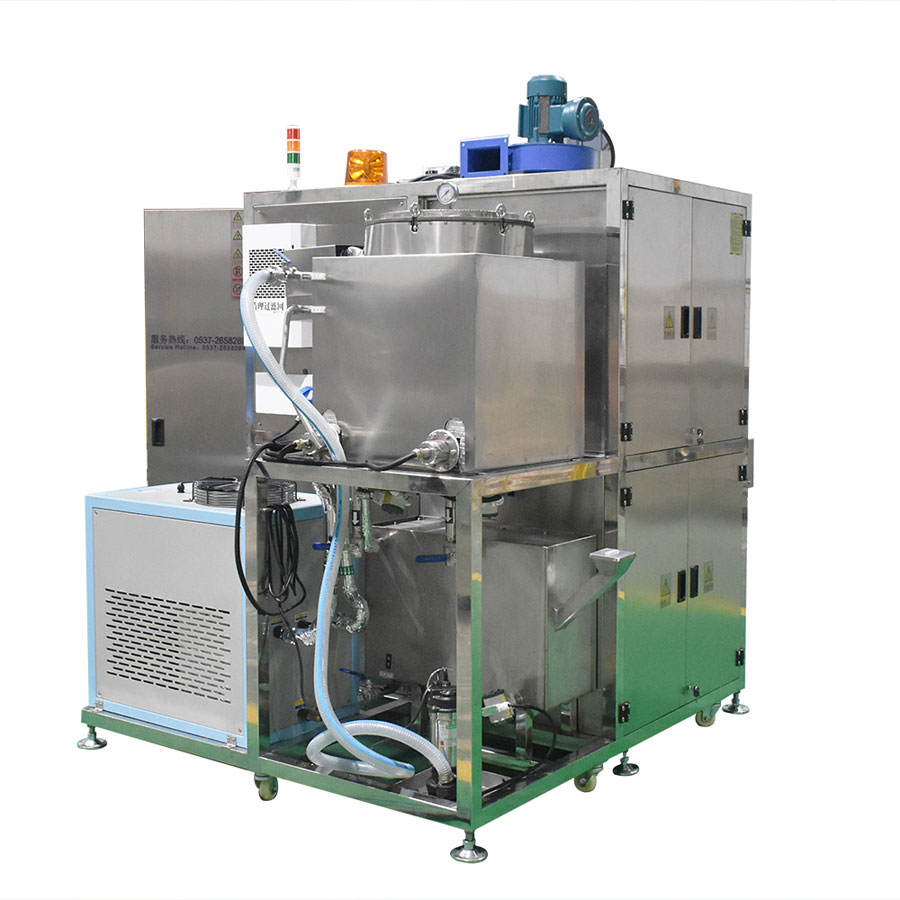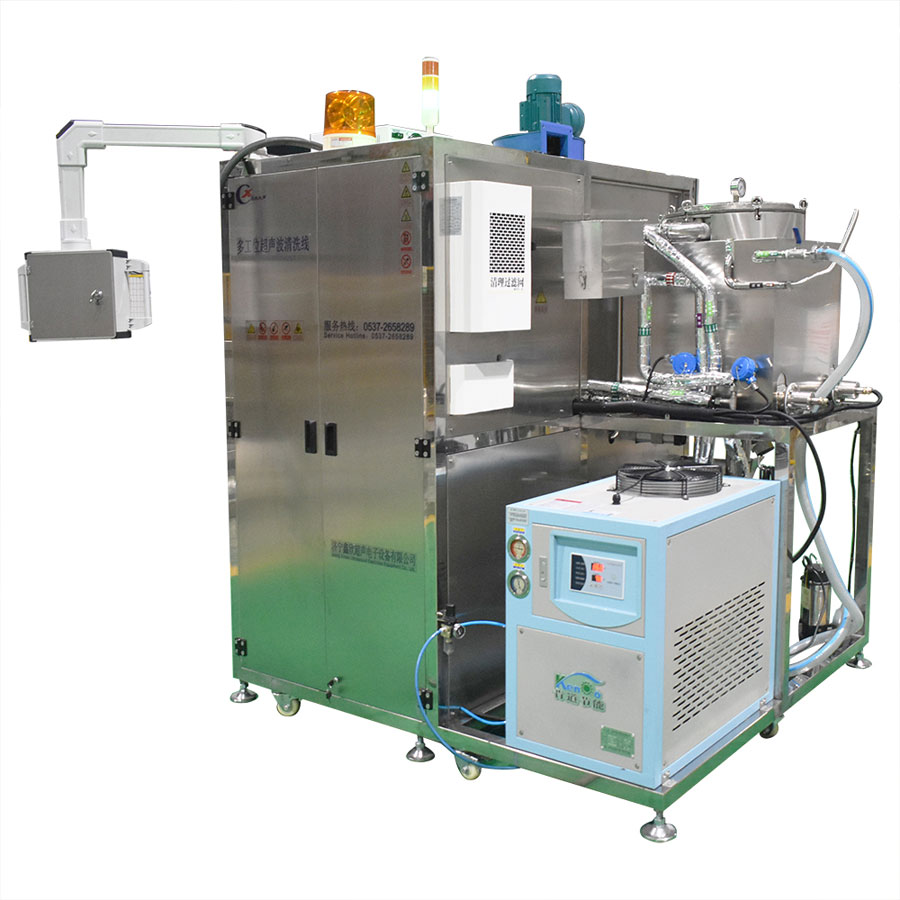 該設(shè)備為高潔凈度清洗機(jī),采用碳?xì)涑暡ㄇ逑垂に嚒T撛O(shè)備由超聲波清洗槽、蒸汽浴洗槽、清洗網(wǎng)框、清洗槽冷凝區(qū)、分水器、工業(yè)冷水機(jī)、溶劑回收機(jī)、管路系統(tǒng)、智能控制系統(tǒng)等組成